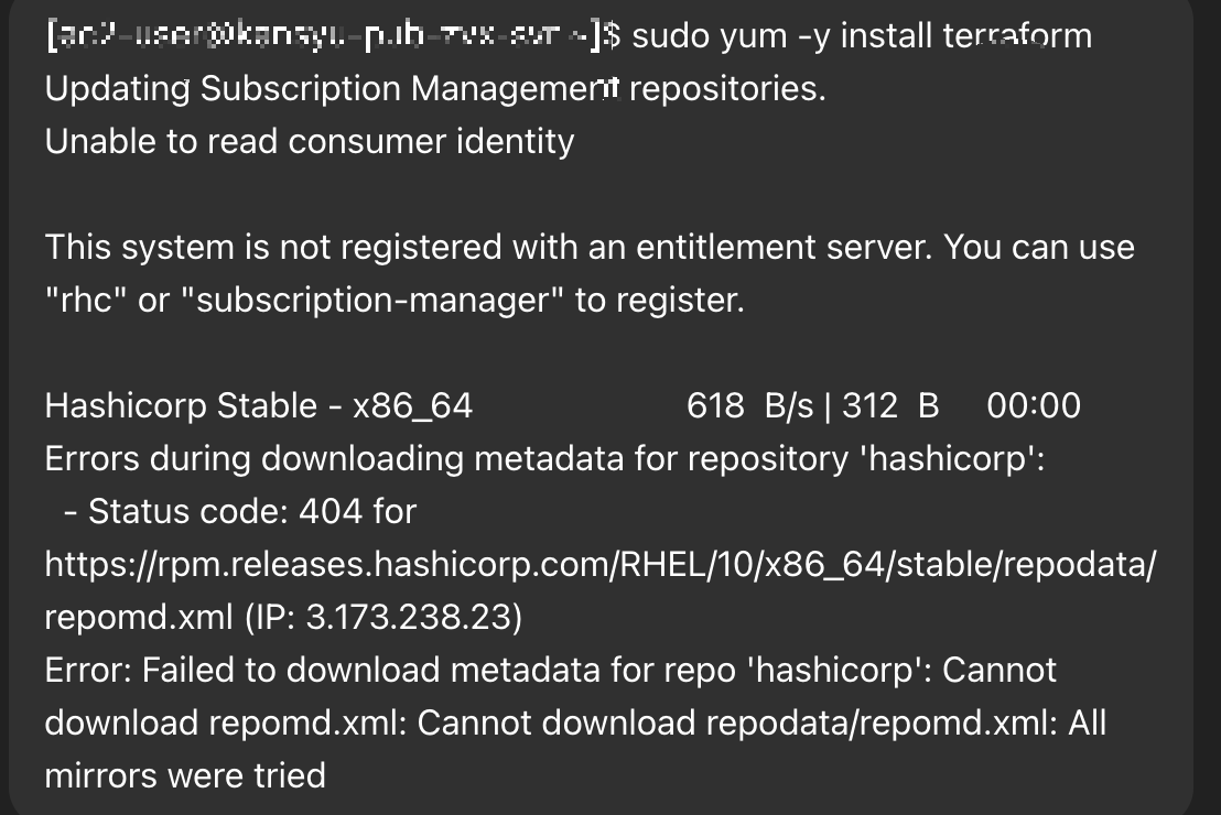설치할 때 HashiCorp 저장소 URL과 OS 버전에 맞지 않아서 404 오류가 발생하는 문제가 있었다.