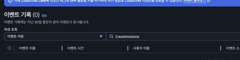 예를 들어 인스턴스를 생성한 이벤트만 보고 싶다면 이벤트 이름에 CreateInstance와 같이 검색하면