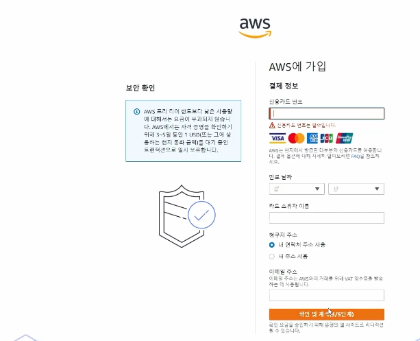 로그인페이지 처음 이용하면 루트사용자 IAM 사용자는 나중에 설명하고 AWS 계정 새로 만들기를 눌러서 계정을 생성해야한다.