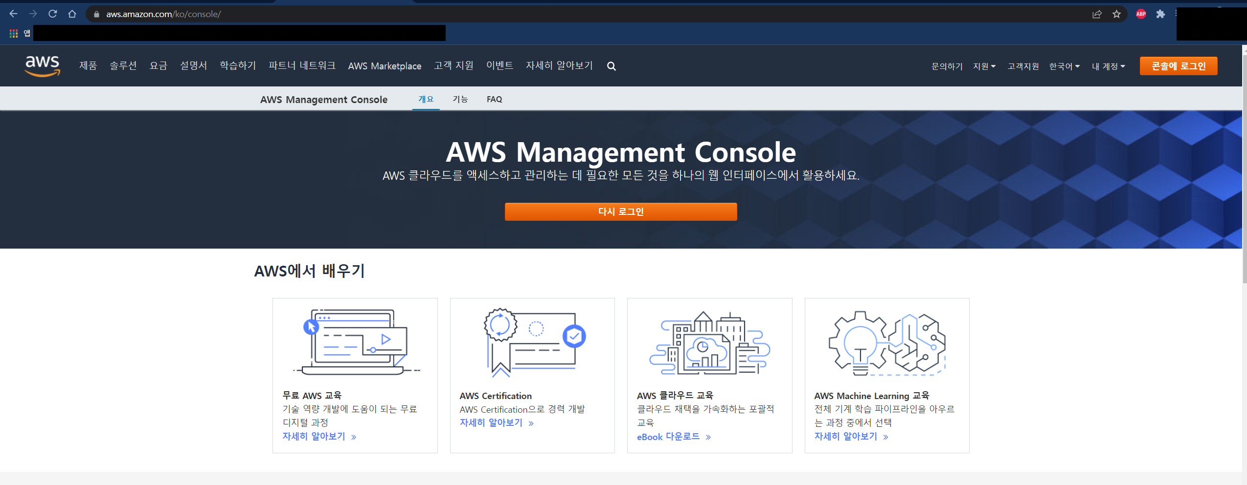 AWS 메인페이지 우선 들어가게되면 로그인 버튼을 누른다.