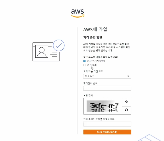 AWS 전화번호 마지막으로 문자메시지 인증을 하고
