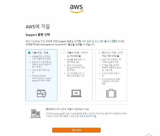 AWS 홈페이지 해당 첨부링크로 들어가거나 아니면 검색하면 나온다.
